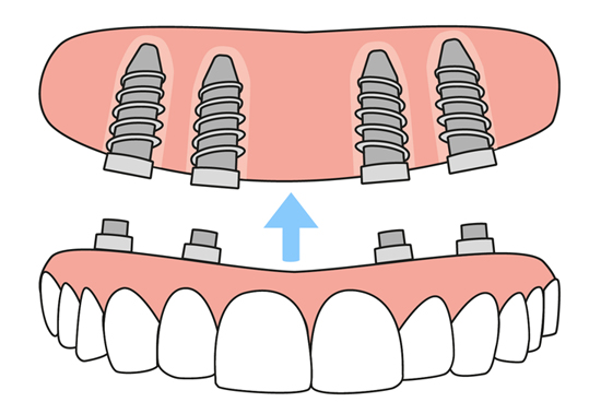 This is a way to replace all your upper or lower teeth using just four implants. The implants hold a full set of new teeth in place, giving you a strong and natural-looking smile.